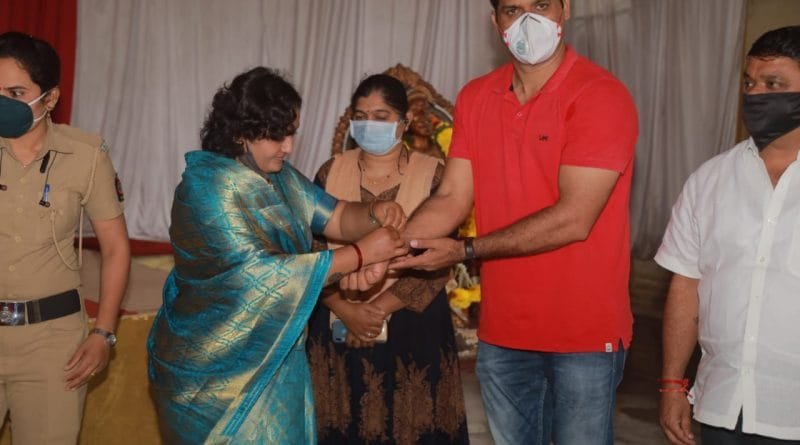 आळंदी : स्वातंत्र्य दिनाचे औचित्य साधून आळंदी शहर भारतीय जनता पक्षाच्या वतीने महिला मोर्चाचे विशेष सहकार्याने रक्षाबंधन पर्व अगदी आगळ्या वेगळ्या पद्धतीने साजरा करण्यात आले. यावेळी खास ‘रक्षाबंधन उपक्रम’ राबवित कोविड योद्धा डॉक्टर्स, वैद्यकीय कर्मचारी, सफाई कर्मचारी, पोलीस तसेच गरजू लोकांसाठी अन्नदान वाटपाचे कार्य करणारे विविध मान्यवरांना कोविड योध्दा गौरवपत्र देऊन गौरविण्यात आले.