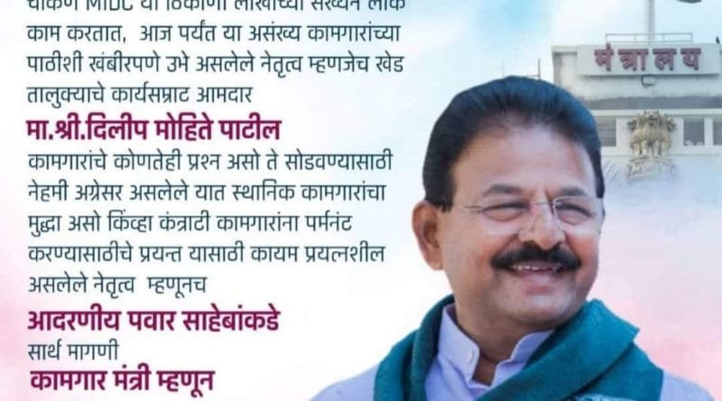 अनेक वर्षे पवार साहेबांना साथ देणाऱ्या खेड तालुक्याला कधी मिळणार न्याय…? ● आमदार दिलीप मोहितेंना कामगार मंत्री बनविण्याची कार्यकर्त्यांची सोशल मिडियावर जोरदार मागणी