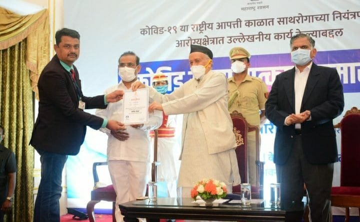 आरोग्य कर्मचारी मकसूद शेख यांचा राज्यपाल व आरोग्य मंत्र्यांच्या हस्ते कोरोना योद्धा पुरस्काराने गौरव