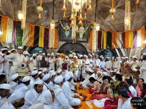 भाविक वारक-यांच्या नेत्रांच्या कडातुन आश्रु ; घंटानाद, पुष्पवृष्टी, हरिनामाचा घोष ● मंदिरात माधव महाराज नामदास यांचे कीर्तन…