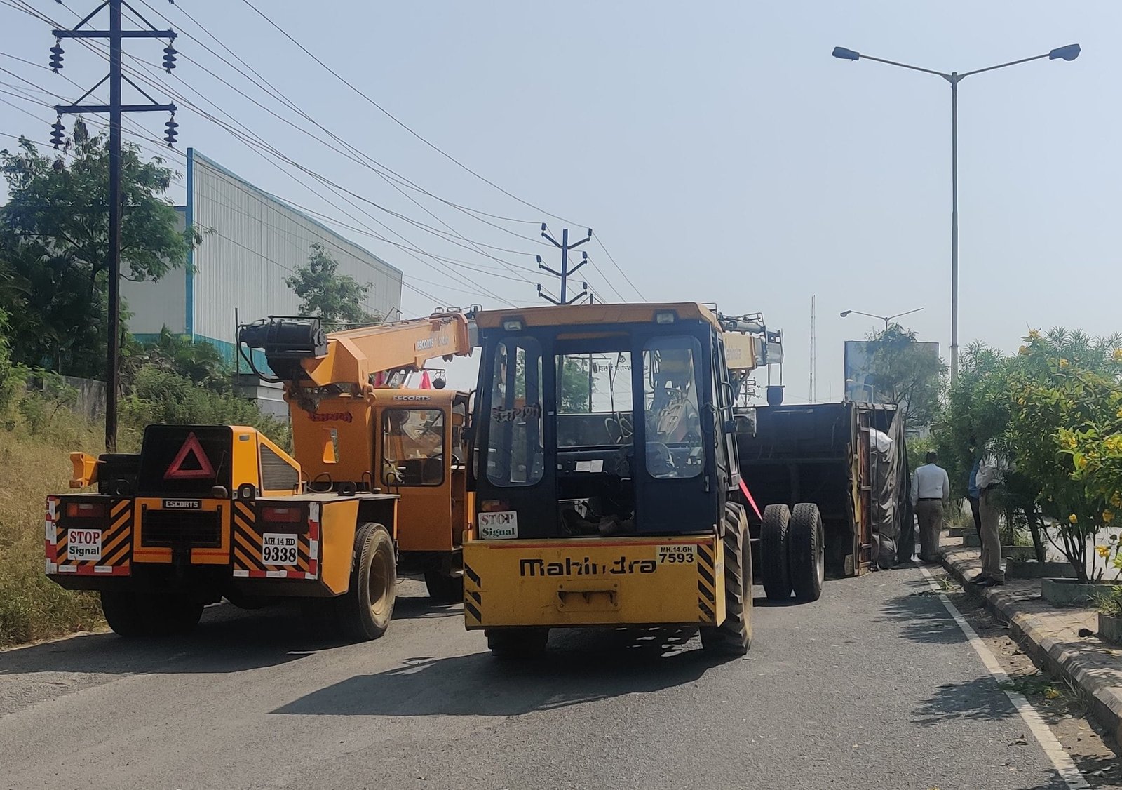 चाकण एमआयडीसी रस्त्यावर मालवाहू टेम्पो उलटला, वाहन चालक आढळला दारूच्या नशेत, वाहन चालकास पोलिसांनी घेतले ताब्यात…
