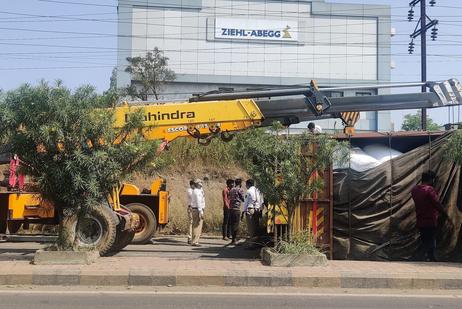 पोलिसांनी दिलेल्या माहितीनुसार, येथील जंबुकर वस्तीवरील एका कंपनीतून थर्माकोल गोळीचे पॅकेजिंग मटेरियल हडपसर येथे घेऊन जाणारा मालवाहू टेम्पो क्रमांक ( एम एच 14 सी पी 6327 ) आज दि. 8 नोव्हेंबर दुपारी बाराच्या सुमारास रस्त्यावर आडवा उलटला. सुदैवाने यात कोणतीही जीवितहानी झाली नाही. सदर टेम्पोचा वाहनचालक दारूच्या नशेत आढळल्याचे वाहतूक पोलिसांनी सांगितले. पोलिसांनी वाहन चालकाच्या मदतीने कासारवाडी येथील टेम्पोचा मालकाला संपर्क केला असून वाहन चालकास ताब्यात घेतले आहे.