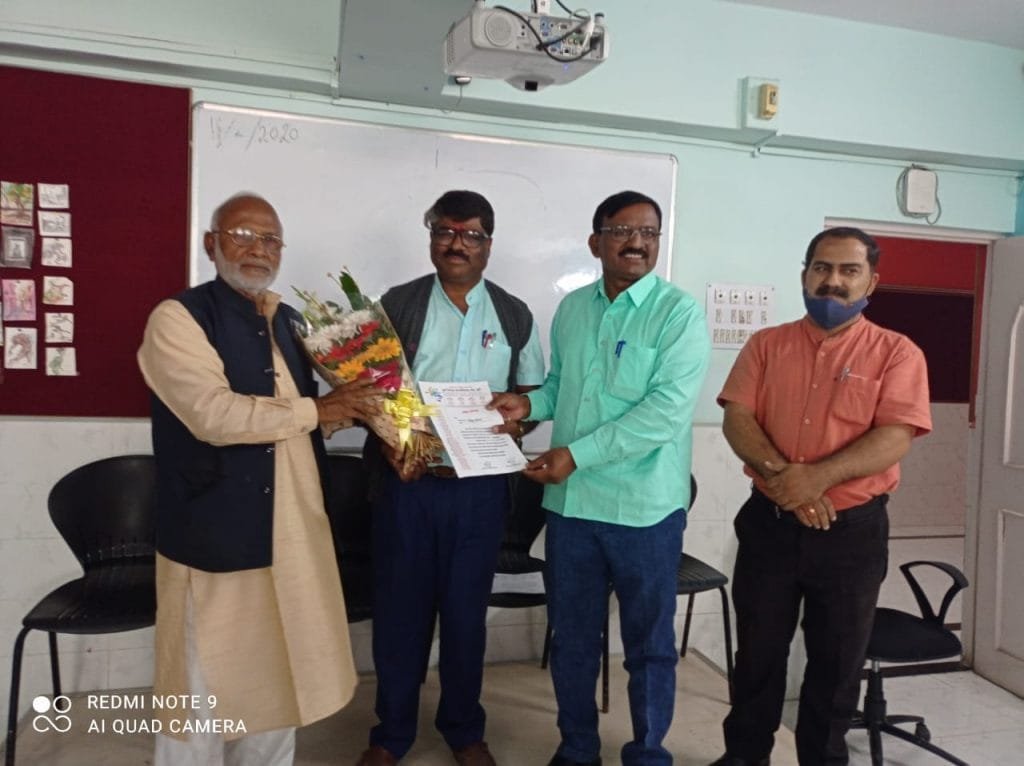 फोटो : अध्यक्षीय निवडीचे पत्र देताना डावीकडून हुसेन खान ,मिलींद शेलार, किरण सरोदे , श्याम साठे