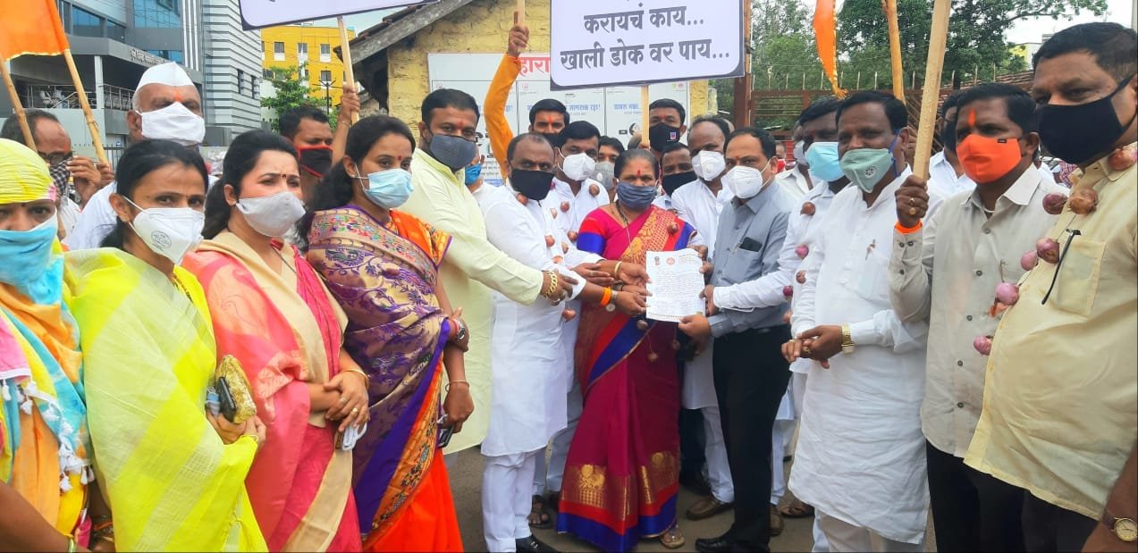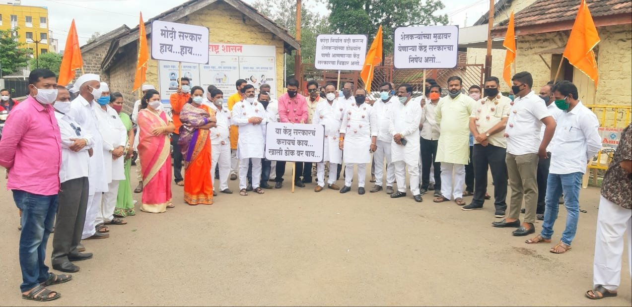 “लॉकडाऊनच्या काळात कवडीमोल भावाने आपला शेतमाल विकावा लागलेल्या शेतकऱ्यांना या आठवड्यात कांद्याला तीन ते चार हजारापर्यंत उच्चांकी भाव मिळाला असल्यामुळे शेतकरी राजा समाधानी होता, परंतु केंद्रातील भाजपा सरकारने कांद्यावर निर्यातबंदी लादून शेतकऱ्यांच्या तोंडचा घास हिरावून घेतला आहे. त्याबद्दल आम्ही खेड तालुका शिवसेना पक्षाच्यावतीने केंद्र सरकारचा तीव्र निषेध करीत आहोत.