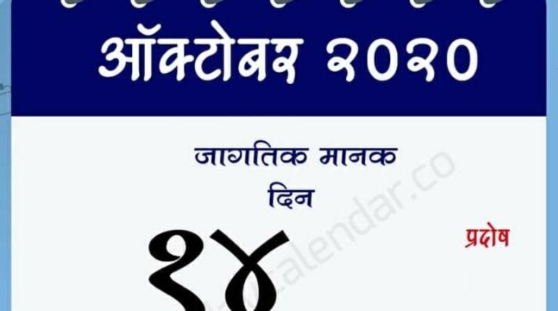 महाबुलेटीन आजचे पंचांग : बुधवार, १४ ऑक्टोबर २०२०, जागतिक मानक दिन