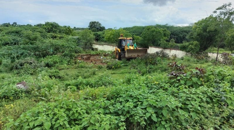 इंदापूर : सरकारी मळ्याच्या संरक्षक भिंतीजवळ वापरात आलेले पीपीई कीट, वैद्यकीय कचरा उघड्यावर टाकलेल्या ‘महाबुलेटीन न्युज’च्या वृत्ताची तातडीने दखल घेत इंदापूर नगरपरिषदेच्या स्वच्छता विभागाने जेसीबीद्वारे खड्डा घेवून त्यामध्ये कीट व कचरा गाडून टाकला.