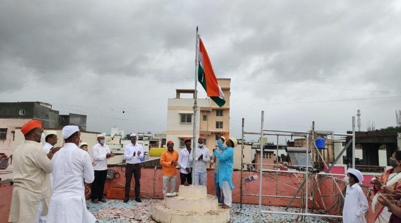 नारायणगाव ग्रामपंचायत येथे कोरोना योद्ध्यांच्या हस्ते ध्वजारोहन