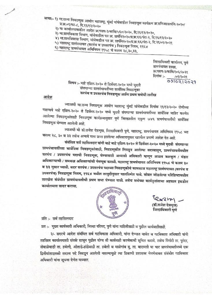 महाबुलेटीन ब्रेकिंग न्यूज : पुणे जिल्ह्यासह खेड तालुक्यातील सरपंच व उपसरपंच निवडणुकीच्या प्रथम सभेच्या तारीख जाहीर : जिल्हाधिकारी डॉ. राजेश देशमुख, पहा आपल्या गावातील निवडीची तारीख…