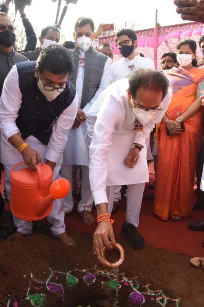 त्यानंतर मुख्यमंत्री ठाकरे, उपमुख्यमंत्री पवार यांनी बालशिवाजी व जिजाऊंच्या पुतळ्यास पुष्पहार अर्पण केला. यावेळी ‘शिवयोग’ या टपालाचे विशेष आवरण (कव्हर) तसेच वन विभागाच्या माध्यमातून 391 वृक्षांच्या रोपणांतर्गत वृक्षारोपण करण्यात आले.