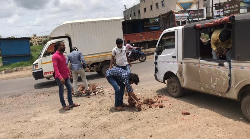 ‘तो’ खड्डा राष्ट्रवादी काँग्रेसच्या कार्यकर्त्यांनी पुन्हा एकदा स्वखर्चाने बुजविला