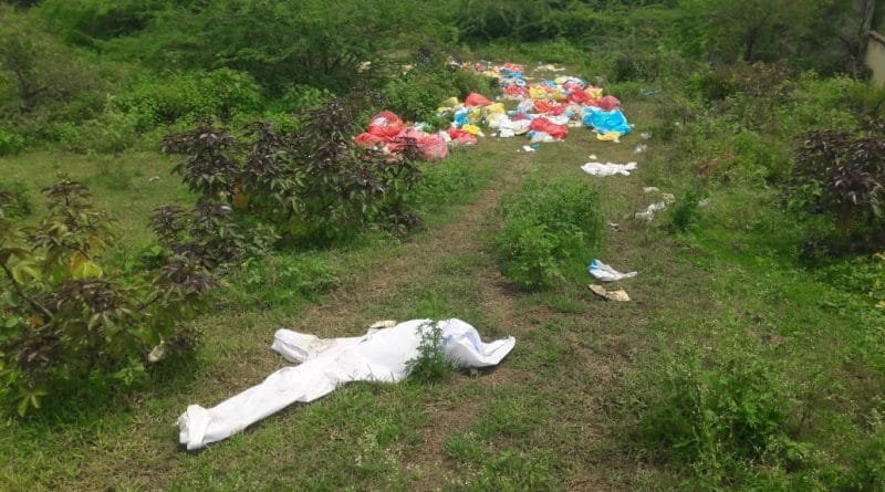वापरात आलेले पीपीई कीट उघड्यावर,